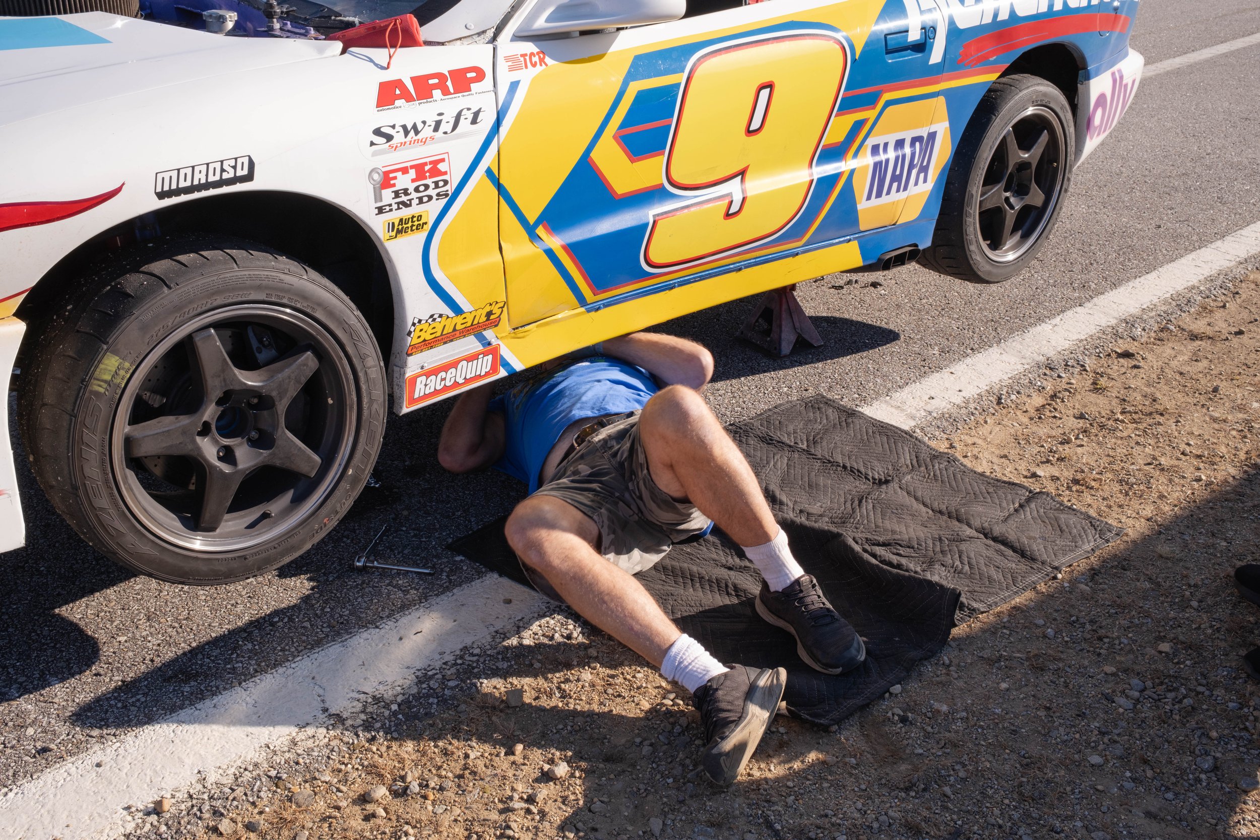 In these photos I capture the essence of racing in Lemons, focusing on moments like mid-race repairs and the inevitable hiccups racers experience, like swapping transmissions, tires changes, and all kinds of oil leaks. It’s a celebration of grassroots racing and pure adrenaline.